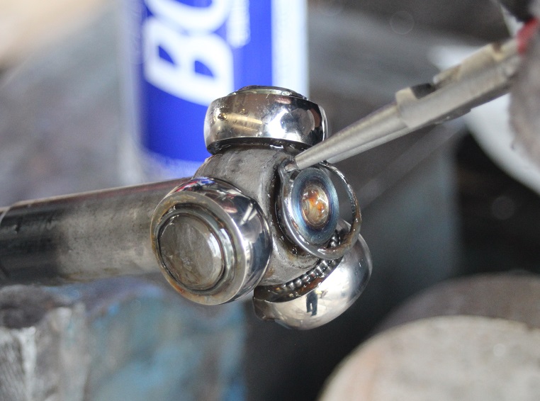 4)Cリングが付いているのでCリングを外し、ベアリングを抜き取ります。 |