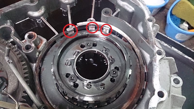クラッチを外してみると、ミッションケースのCリング取付部分が回転と過剰な油圧により、削られてケース本体を交換しなければ修理不可能と判断し、新品部品では高額になるため、中古部品で対応しました。